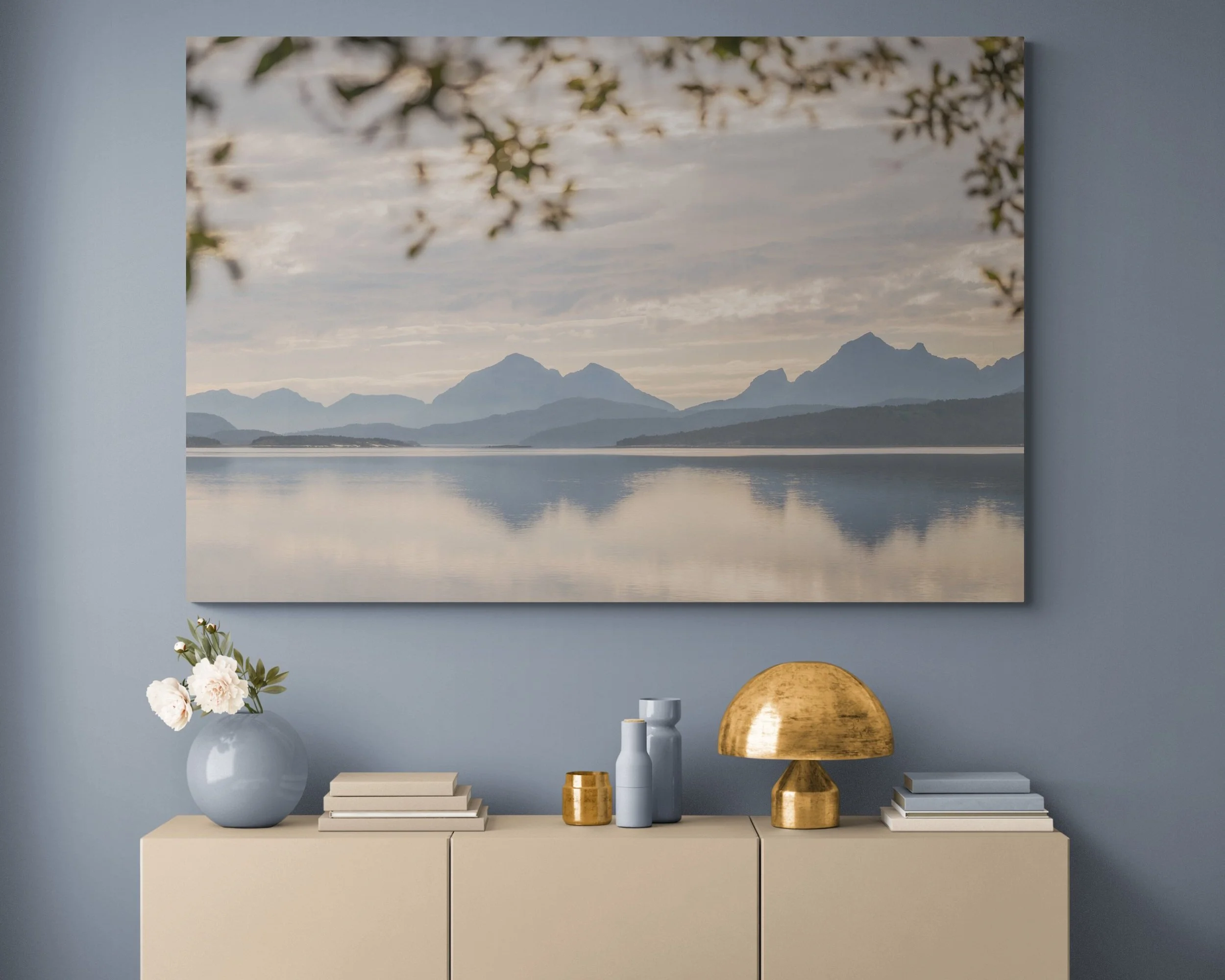 Når du har valgt de riktige veggbildene, kan du utforske forskjellige måter å vise dem frem på. Du kan velge tradisjonelle rammer for en mer formell og elegant stil, eller gå for en moderne og minimalistisk look ved å montere bildene direkte på veggen montert på aluplate, lerret eller akryl. Du kan også bruke ulike opphengsmetoder som bildehyller eller kollasjerammer for å skape dynamikk og bevegelse.